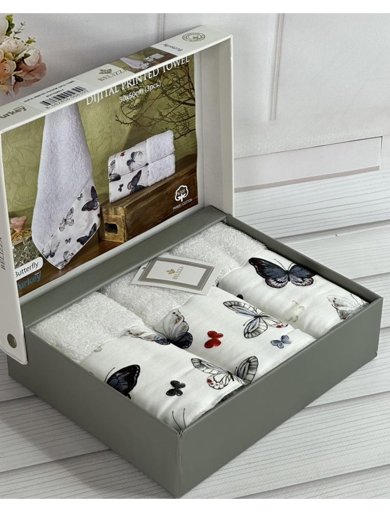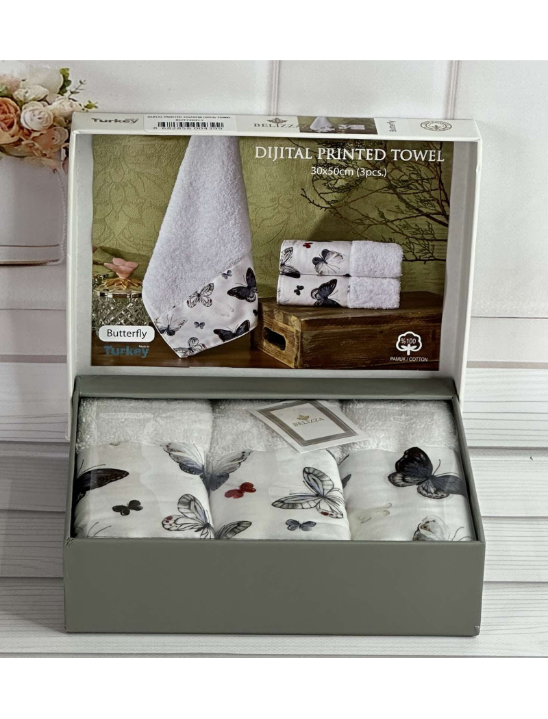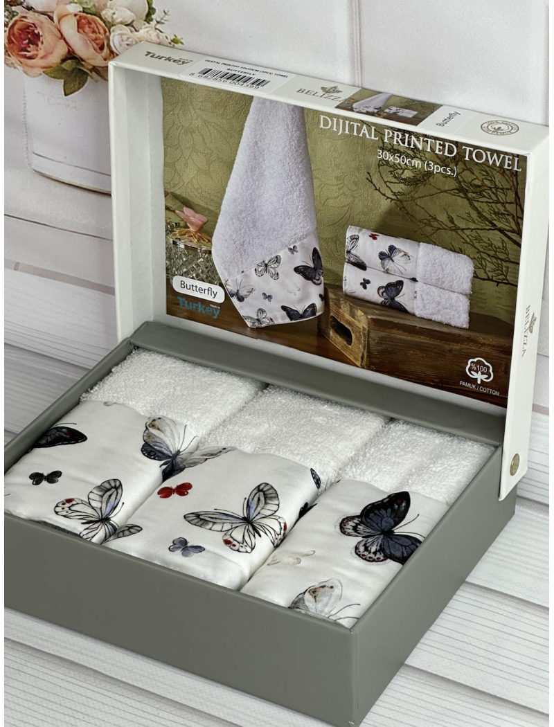 Belizza ТуреччинаМахрові, кухонні рушники з діжжитал малюнком.Щільність махри 500 г/м2Розмір рушників 30х50см., 3 штуки в наборі.