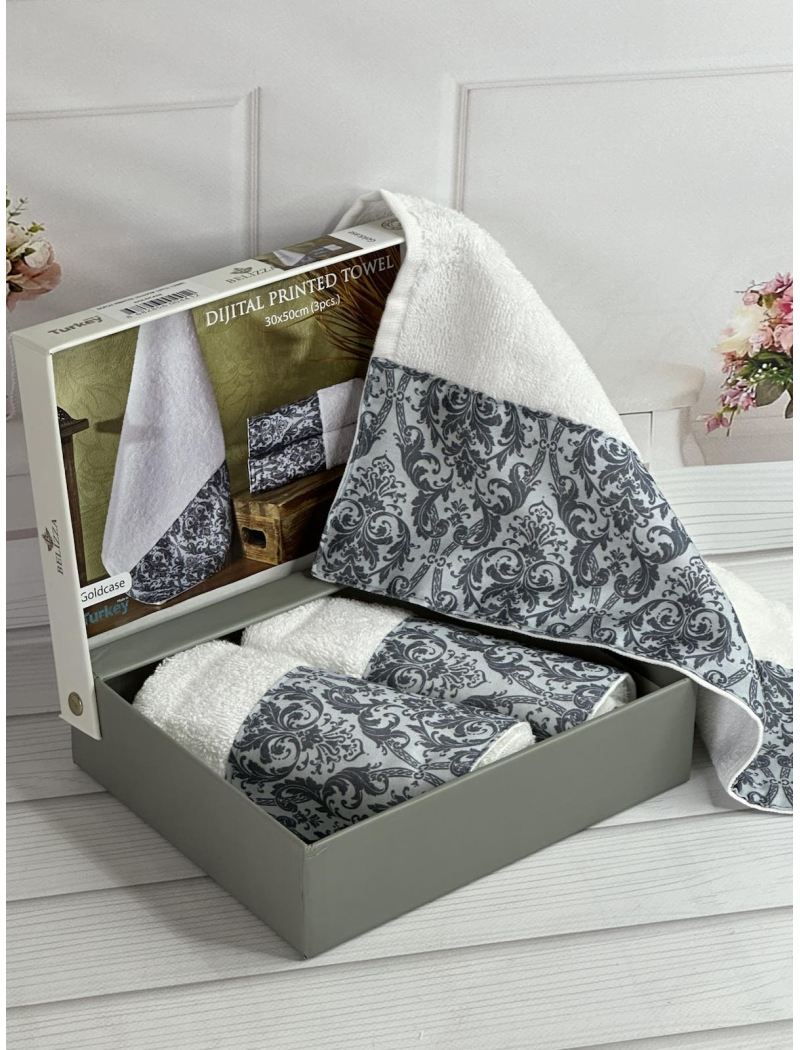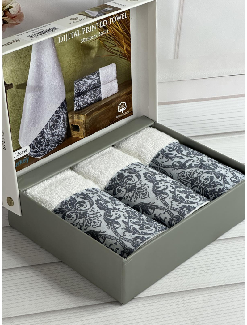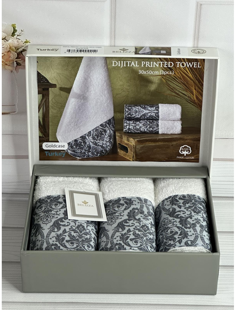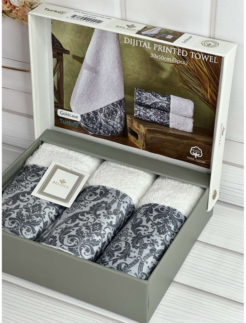 Belizza ТуреччинаМахрові, кухонні рушники з діжжитал малюнком.Щільність махри 500 г/м2Розмір рушників 30х50см., 3 штуки в наборі.