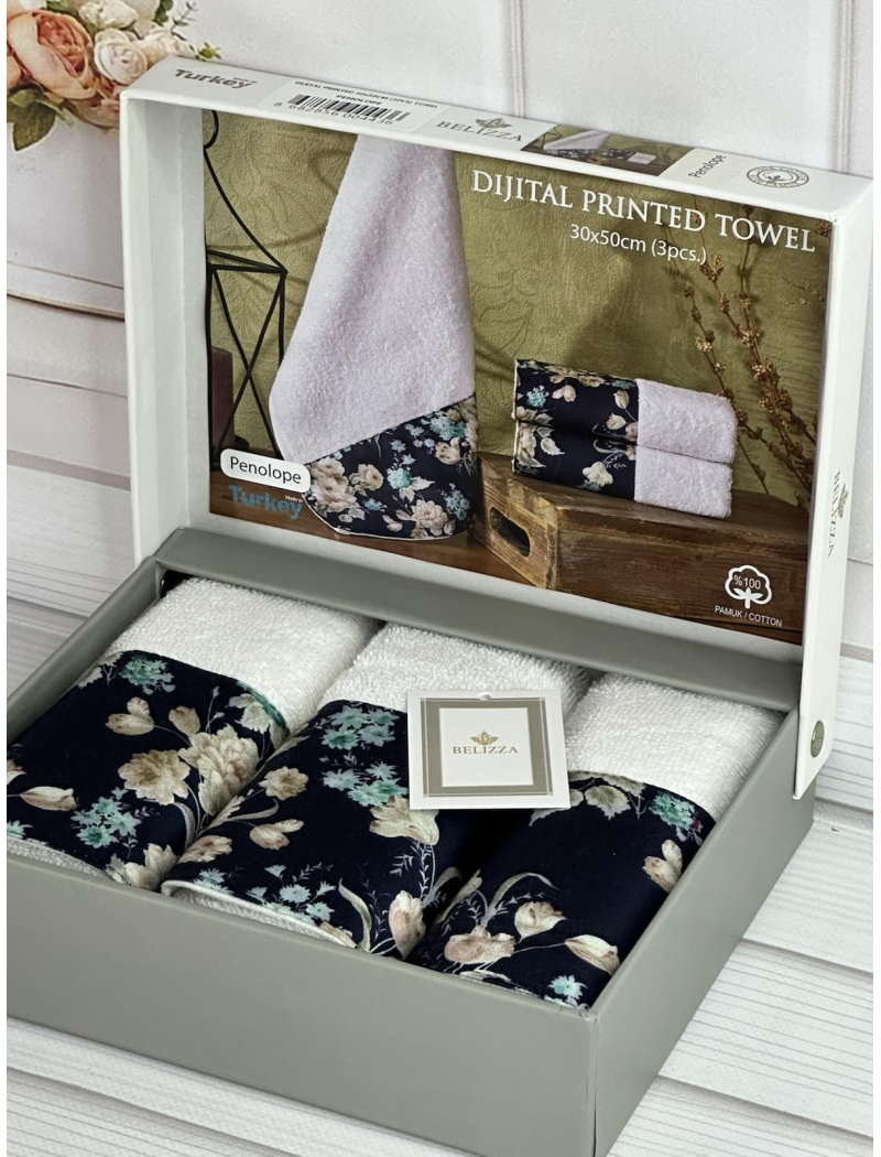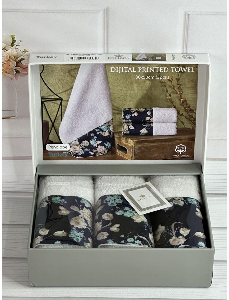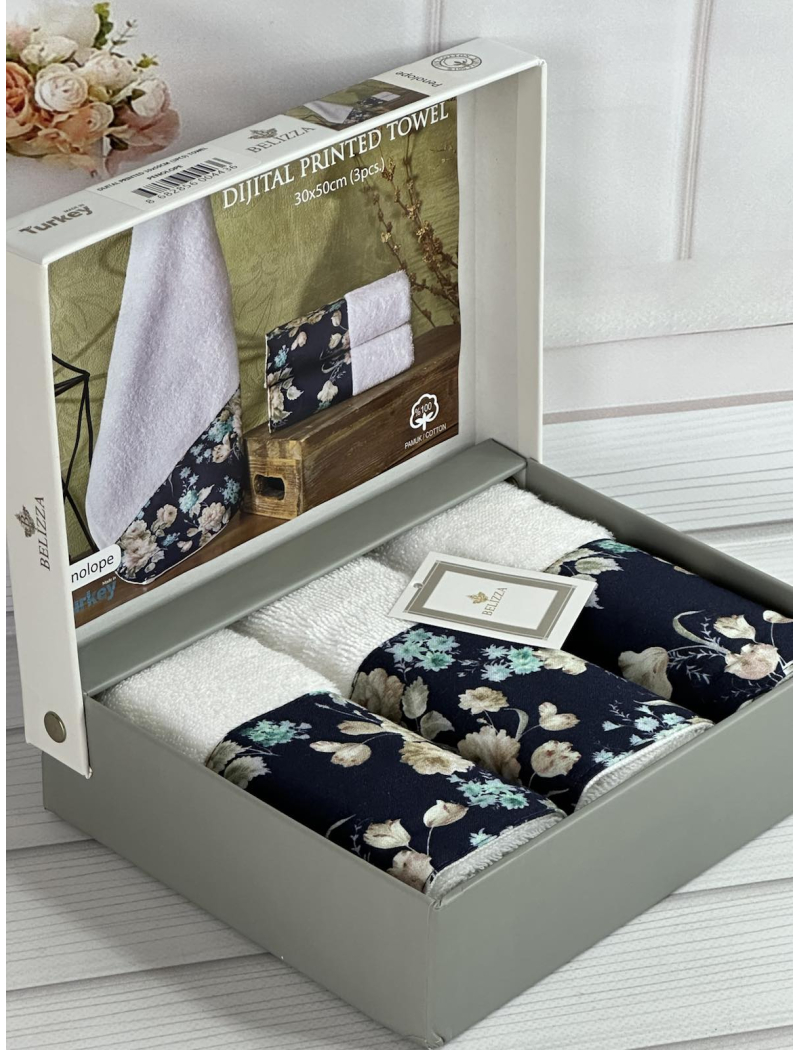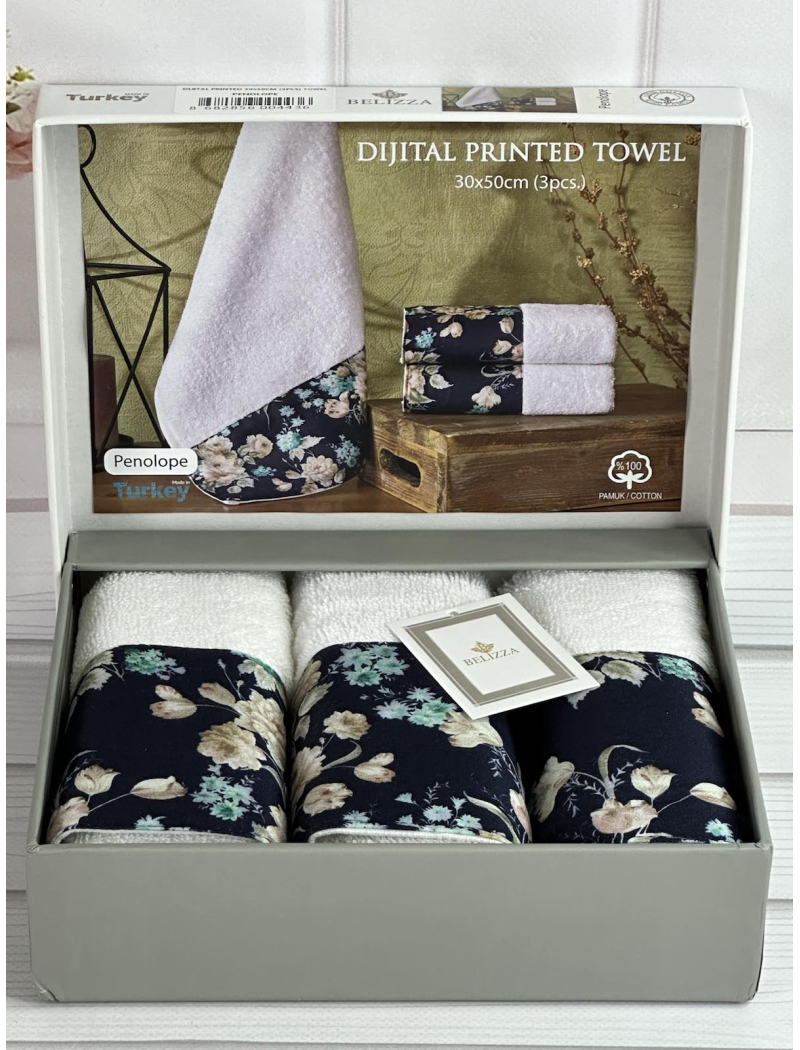 Belizza ТуреччинаМахрові, кухонні рушники з діжжитал малюнком.Щільність махри 500 г/м2Розмір рушників 30х50см., 3 штуки в наборі.