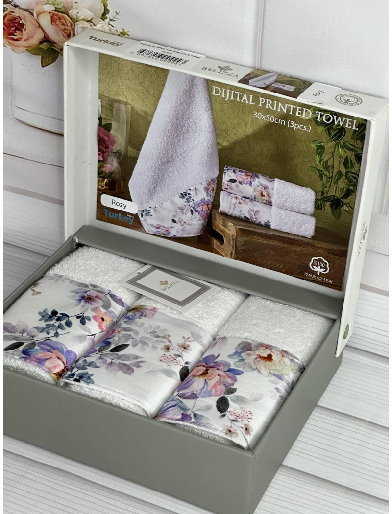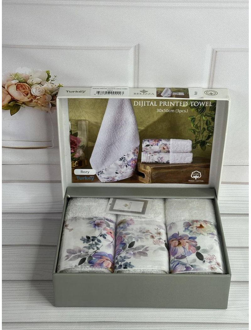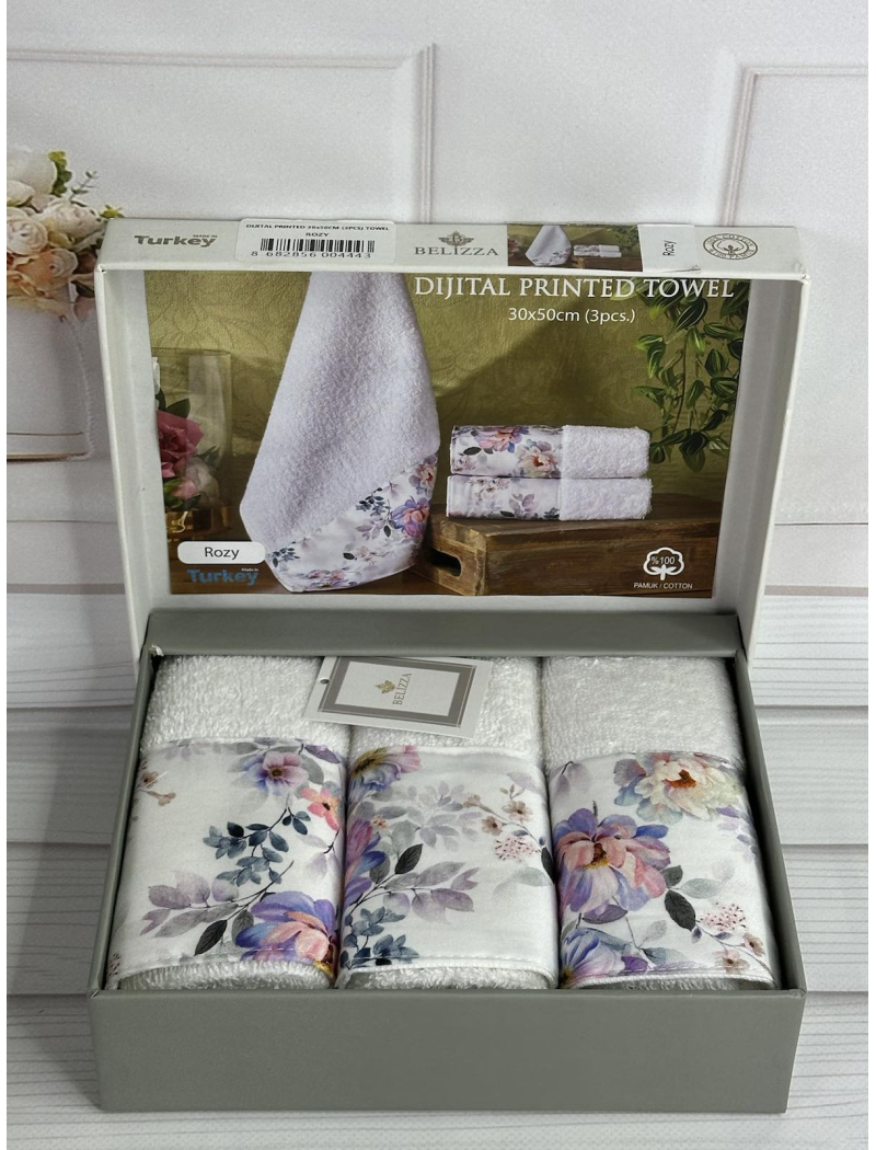 Belizza ТуреччинаМахрові, кухонні рушники з діжжитал малюнком.Щільність махри 500 г/м2Розмір рушників 30х50см., 3 штуки в наборі.