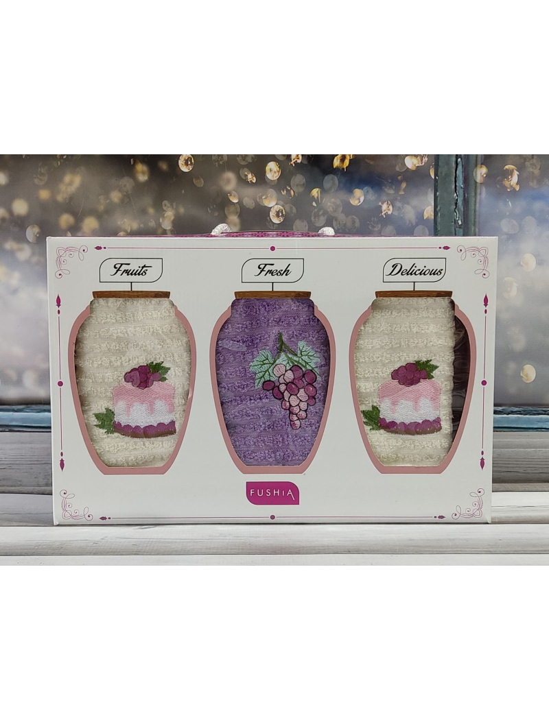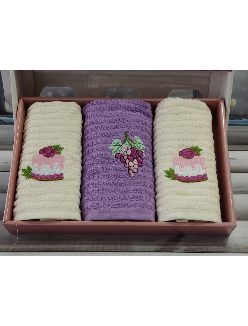 Мрієте про ідеальний подарунок? Обирайте Подарунковий набір махрових рушників від Fushia Туреччина!Вишивка виноградної гілки додає шарму цим 3 рушникам розміром 40х60см, з натуральної бавовни.Збагачуйте домівку затишком та ніжністю кожен день!