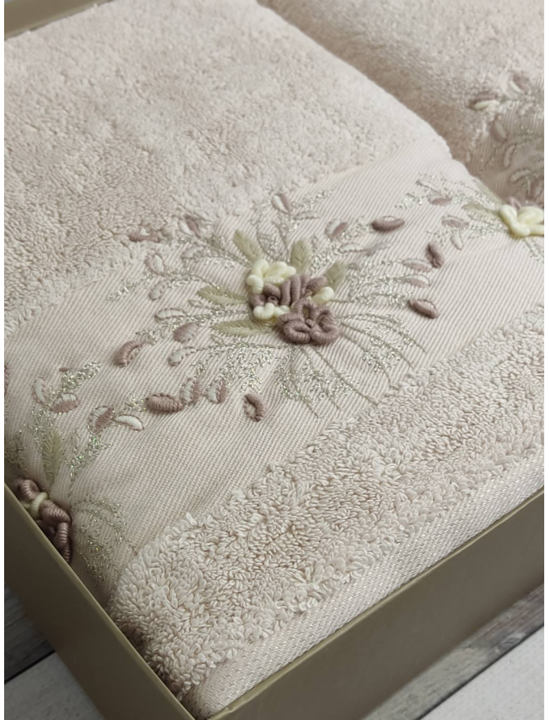 Подарункові рушники - ніжність і природа обєднались в одному продукті.Відчуйте мякість та екологічність в кожному дотику.Виготовлені рушники з нитки пеньє.Pupilla Туреччина. Щільність махри 550 г/м2.В наборі один рушник банний 70х140см., один рушник для обличча 50х90см.
