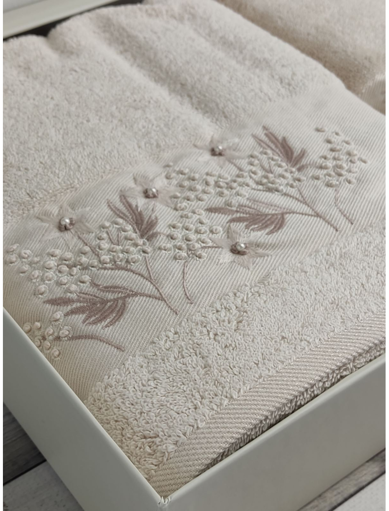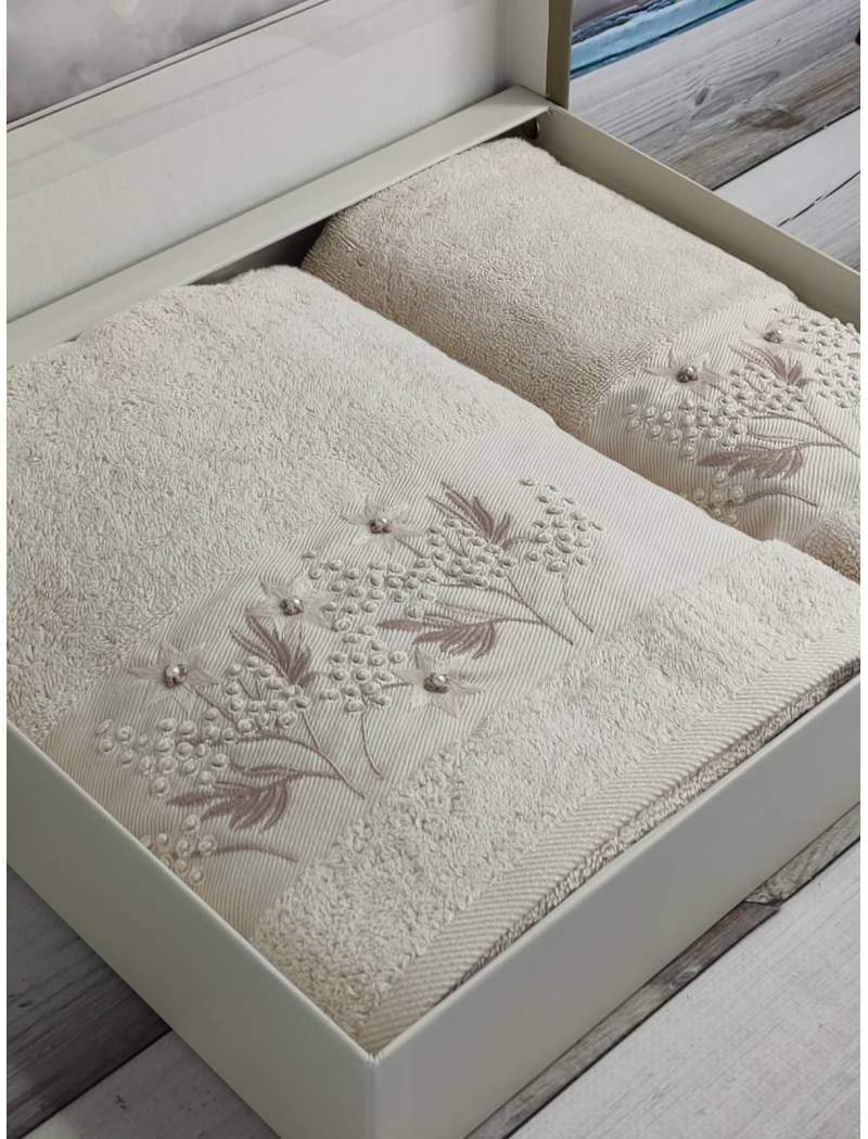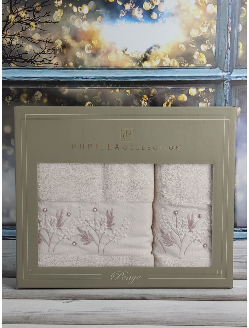 Подарунковий набір рушників від Pupilla Туреччина.Ніжні на дотик рушники виготовлені з тканини пеньє. Такими вони залишаться багато років.В наборі два рушники: банній 70х140см; для обличча 50х90см.Упаковано в презентабельну подарункову коробку.
