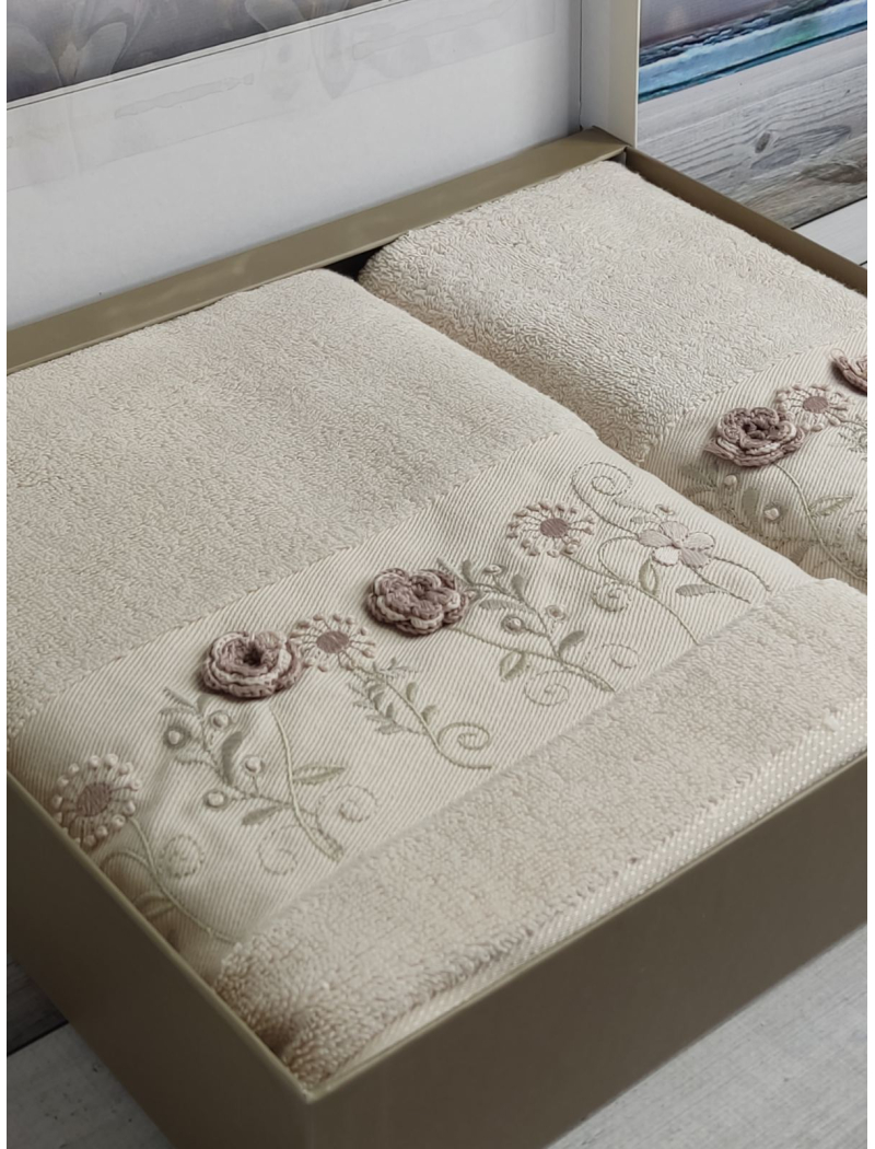 Подарунковий набір рушників від Pupilla Туреччина.Ніжні на дотик рушники виготовлені з тканини пеньє. Такими вони залишаться багато років.В наборі два рушники: банній 70х140см; для обличча 50х90см.Упаковано в презентабельну подарункову коробку.