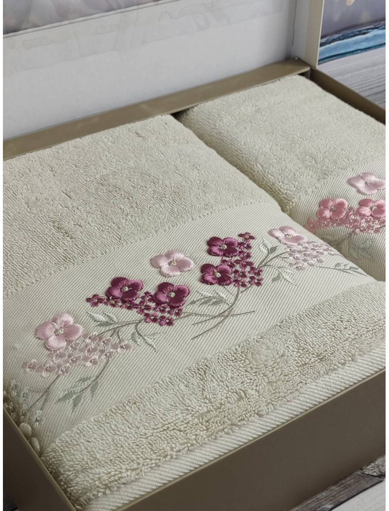 Подарунковий набір рушників від Pupilla Туреччина.Ніжні на дотик рушники виготовлені з тканини пеньє. В наборі два рушники: банній 70х140см; для обличча 50х90см.Упаковано в презентабельну подарункову коробку.
