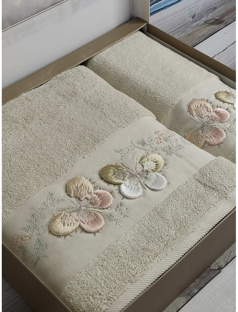 Подарунковий набір рушників від Pupilla Туреччина.Ніжні на дотик рушники виготовлені з тканини пеньє. В наборі два рушники: банній 70х140см; для обличча 50х90см.Упаковано в презентабельну подарункову коробку.