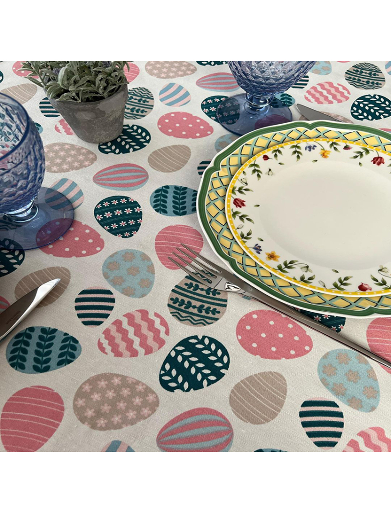 Скатерть с пропиткой устойчива к пятнам и влаге. Настоящая находка для кухни, обеденного или праздничного стола.