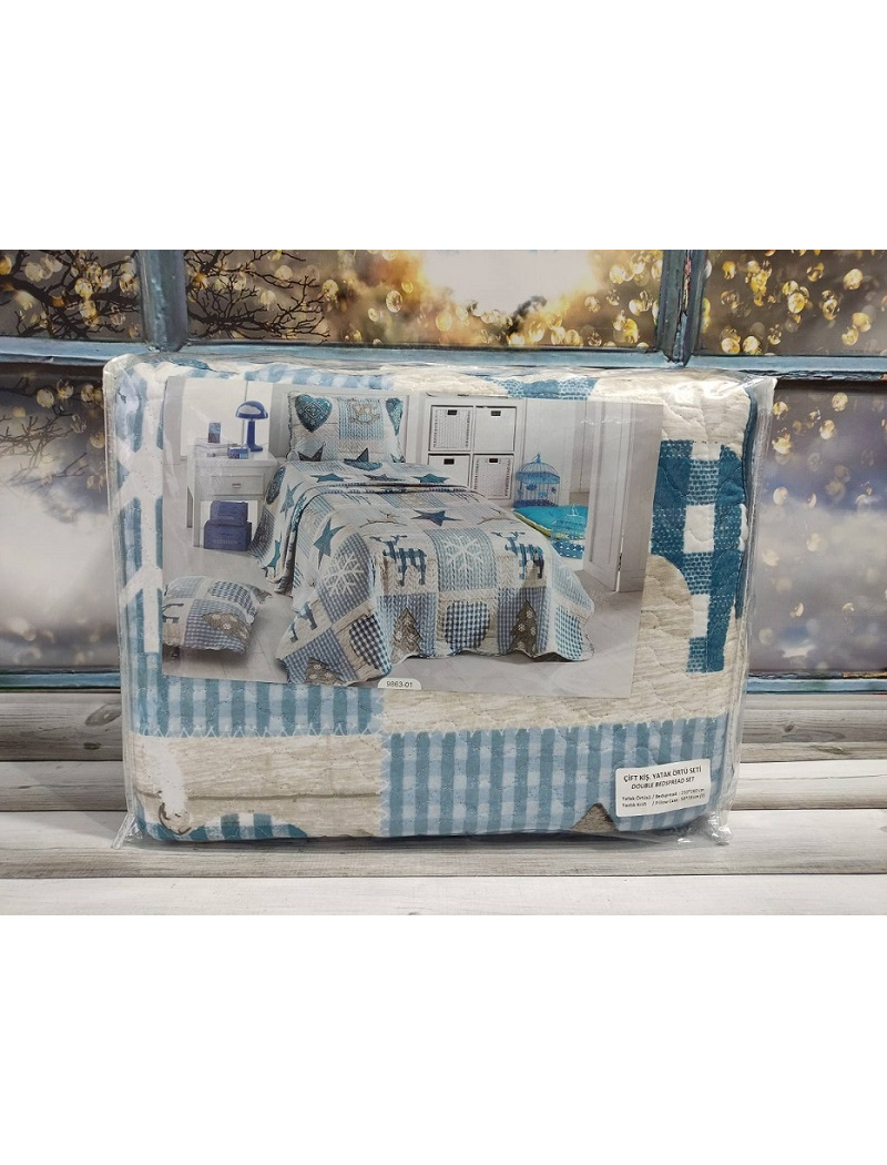 Опис - 9863 mavi стботане покривало 250х260см. Бавовна. Miss Bella Туреччина