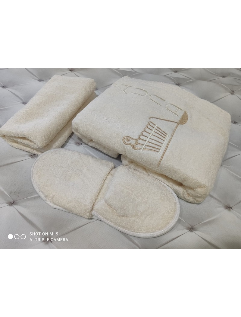 В наборі: рушник спідниця на липуцчі 46х52см., рушник 50х90см., капці 38-42 розміру