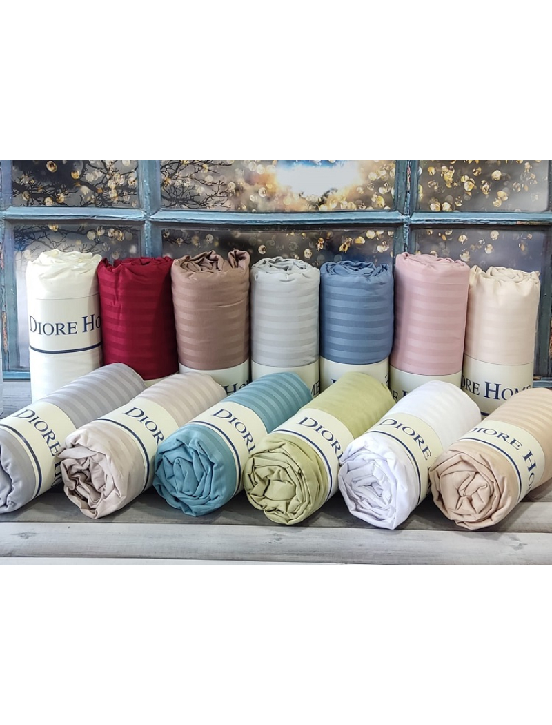 Сатинове простирадло на резинці. Одноколькорові в полоску.Виготовлені з тканини сатин-страйп з натуральної бавовни.Diore home Туреччина.Розмір простирадла 180х200см., +30см., для повного обтягування матрацу.В наборі також є наволочки 50х70см., 2 штуки.