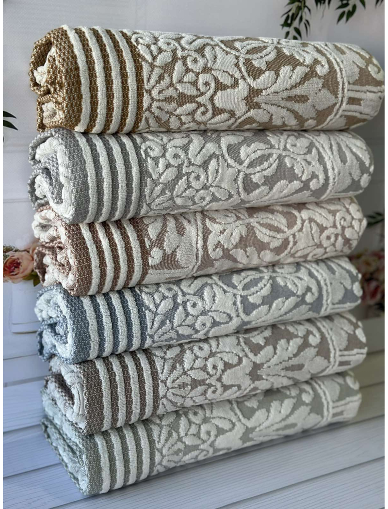 Однією з ключових особливостей є текстура тканини пеньє, яка надає рушникам оксамитовий, гладкий вигляд і відчуття. Це робить їх особливо приємними на дотик і забезпечує комфорт при використанні.
