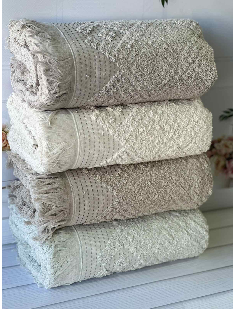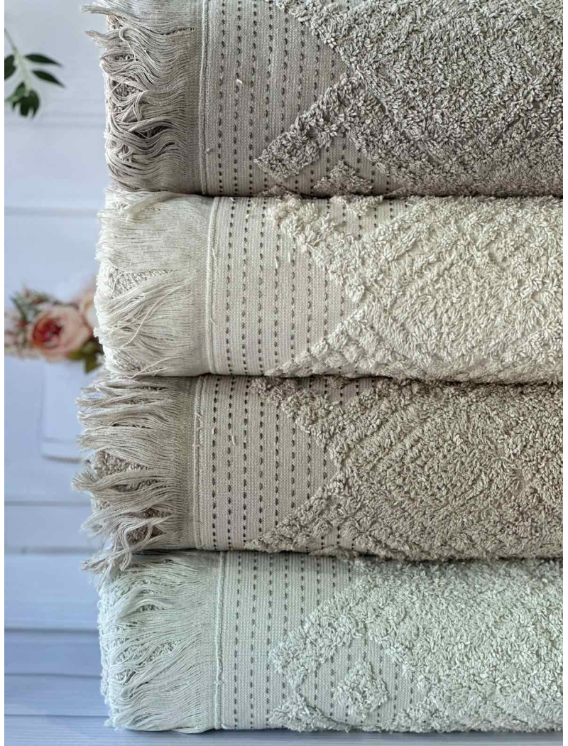 В наборі 4 рушники, 50х90см.Hazan Gulu Туреччина