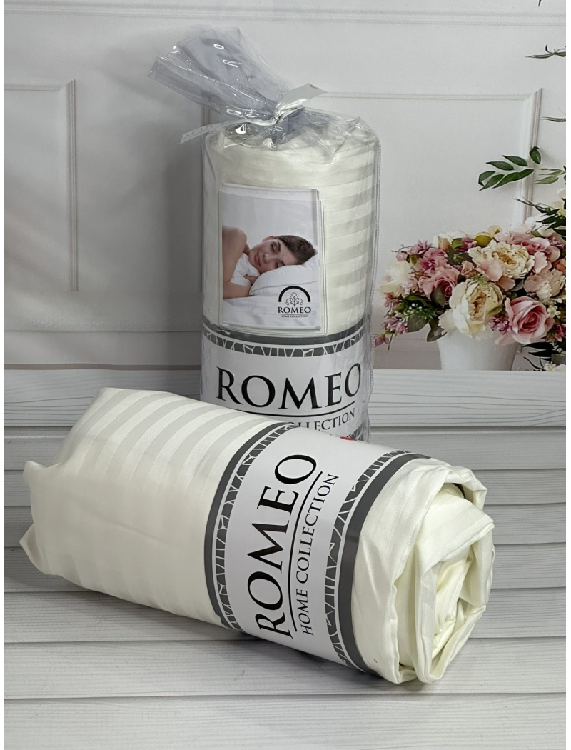Сатинове простирадло на резинці. Одноколькорові в полоску.Виготовлені з тканини сатин-страйп з натуральної бавовни.Romeo home Туреччина.Розмір простирадла 180х200см., +30см., для повного обтягування матрацу.В наборі також є наволочки 50х70см., 2 штуки.