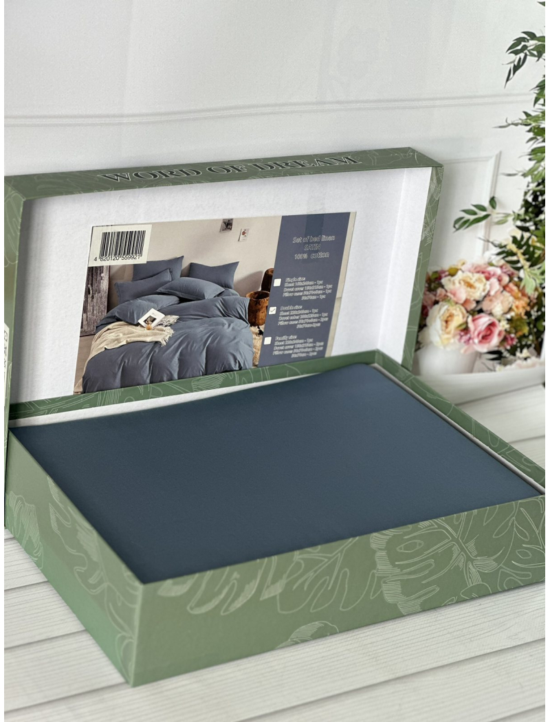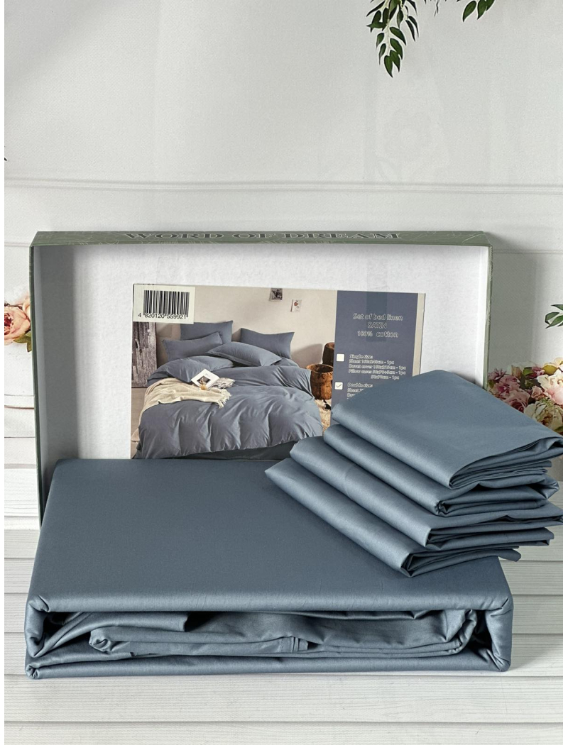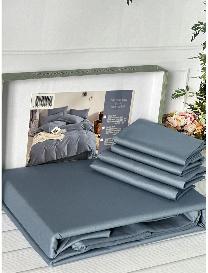 Blue сатинова постільна білизна євро розміру. Word of dream.