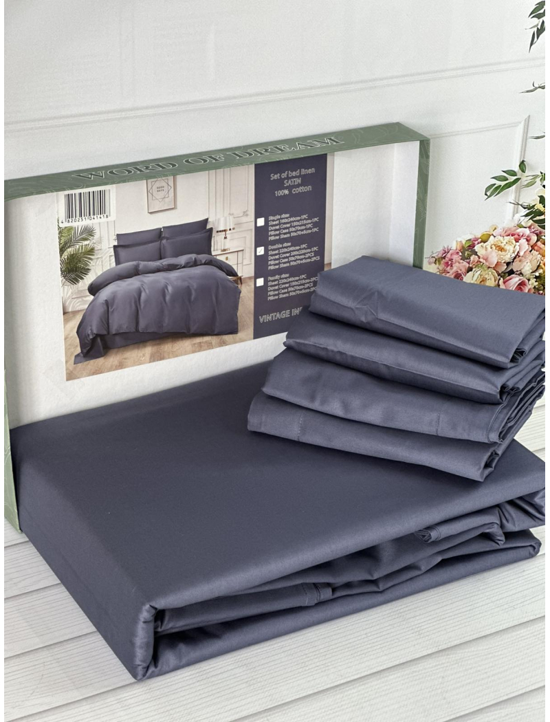 Antrasit сатинова постільна білизна євро розміру. Word of dream.