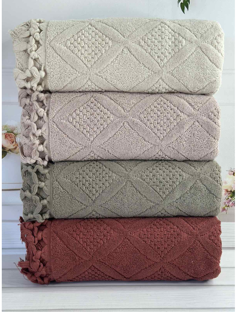 В наборі 4 рушники, 70х140см.Hazan Gulu Туреччина
