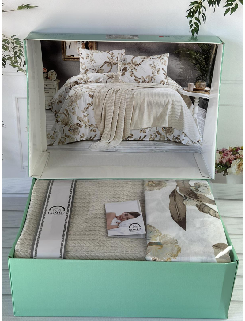 Bej Літній набір з Плед машинна в'язка. Romeo home Туреччина