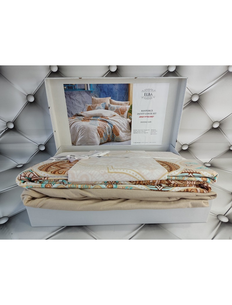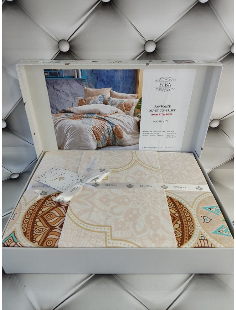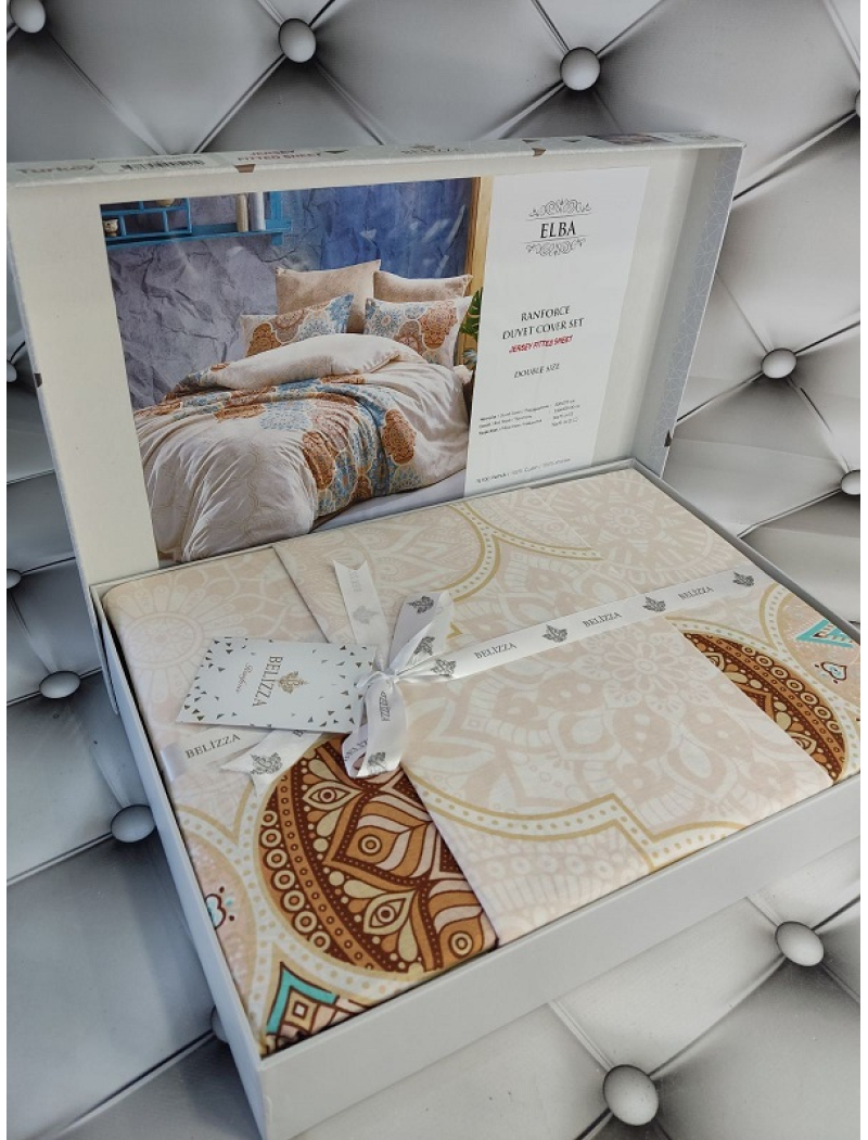 Хлопковое постельное белье с трикотажной простыней на резинке.