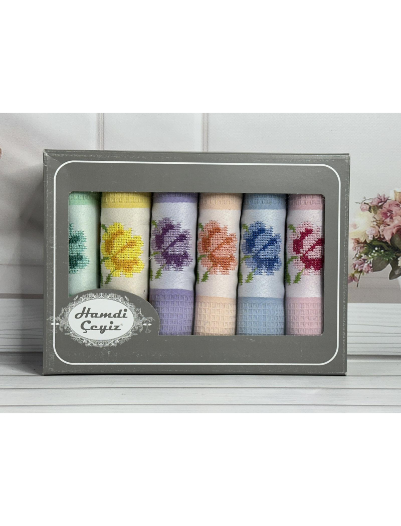Вафельні кухонні рущники з вишивкою В наборі 6 штук, 45х70см.Натуральна бавовна. Бавовна. Hamdi Туреччина.