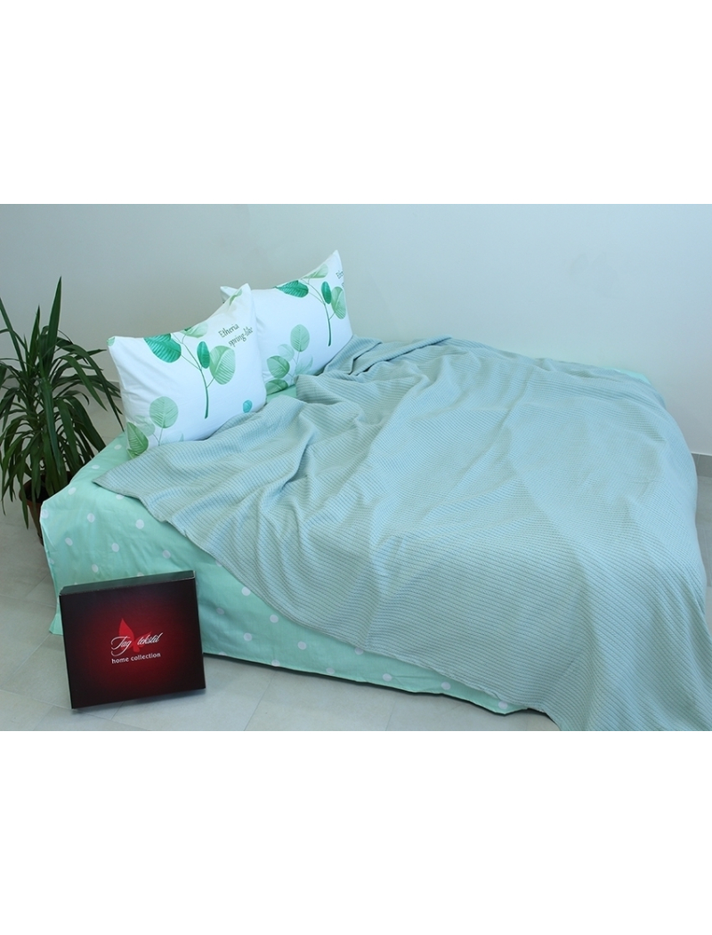 Яркий и креативный летний комплект постельного белья без пододеяльника с простынью-покрывалом пике.
