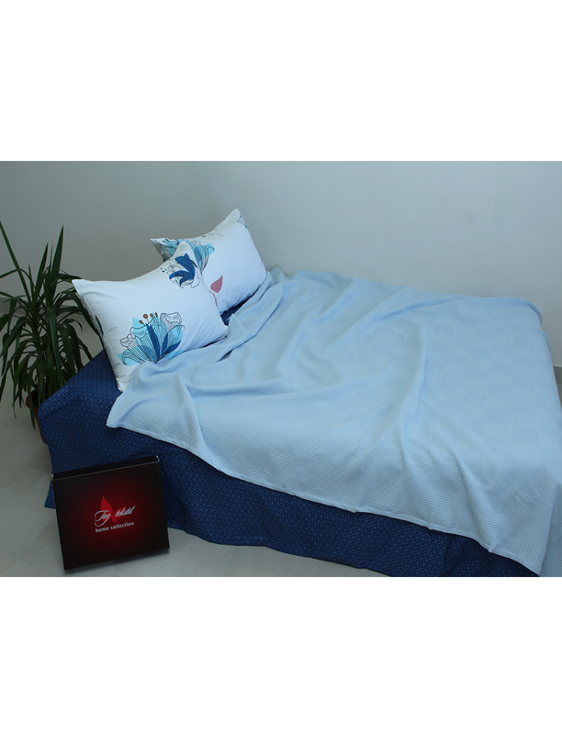 Яркий и креативный летний комплект постельного белья без пододеяльника с простынью-покрывалом пике.