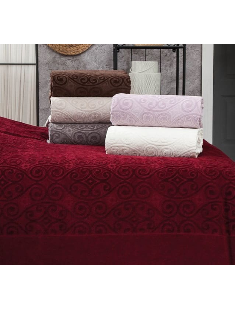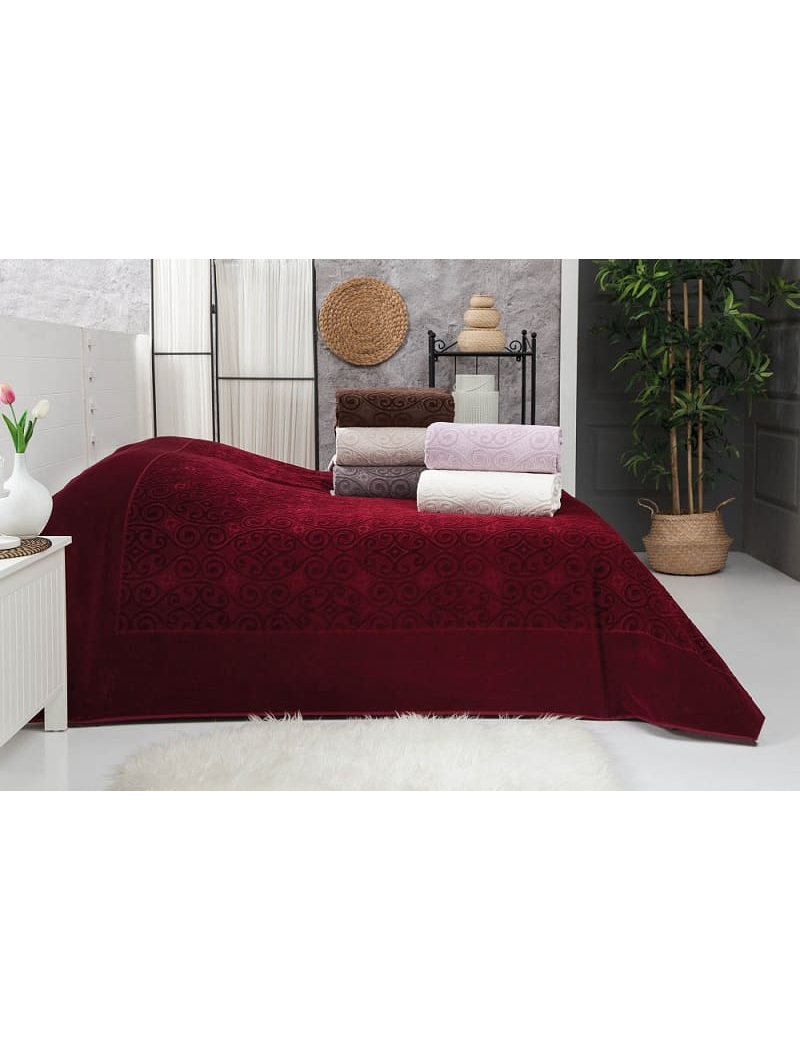 Описание - Hanzade bordo велюрове простирадло 200х220см. Brlizza Туреччина