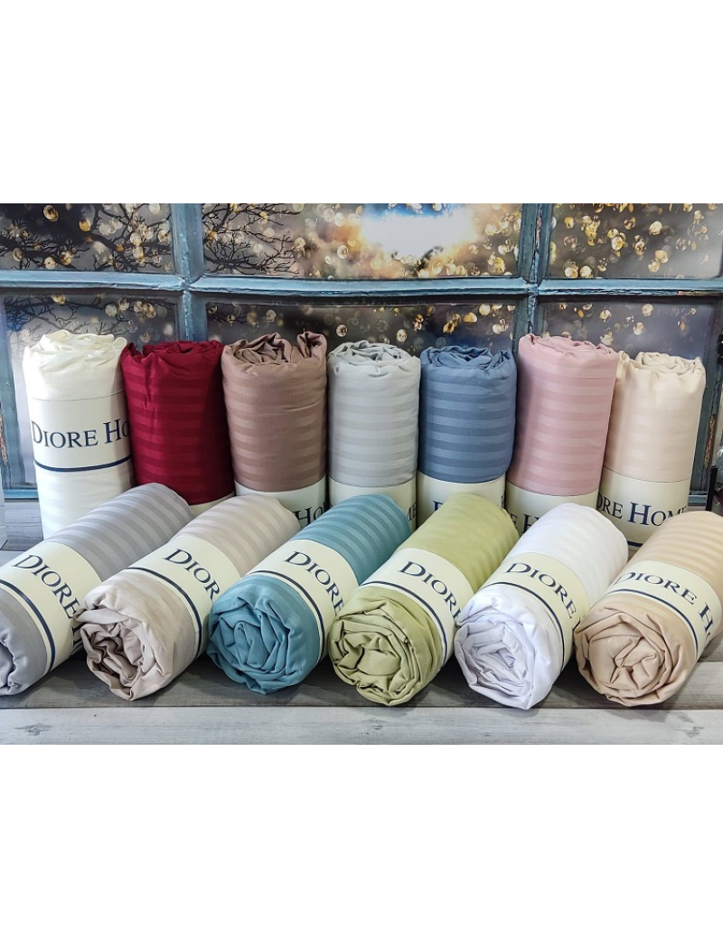 Сатинове простирадло на резинці. Одноколькорові в полоску.Виготовлені з тканини сатин-страйп з натуральної бавовни.Diore home Туреччина.Розмір простирадла 160х200см., +30см., для повного обтягування матрацу.В наборі також є наволочки 50х70см., 2 штуки.