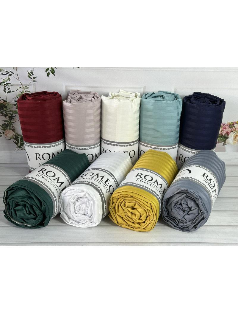 Сатинове простирадло на резинці. Одноколькорові в полоску.Виготовлені з тканини сатин-страйп з натуральної бавовни.Romeo home Туреччина.Розмір простирадла 180х200см., +30см., для повного обтягування матрацу.В наборі також є наволочки 50х70см., 2 штуки.